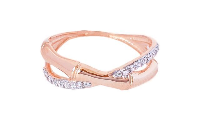 14K Red Gold Ring Bamboo with Cubic Zirconia 350075