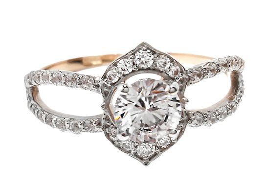 Перстень з червоного золота з фіанітами 350165
