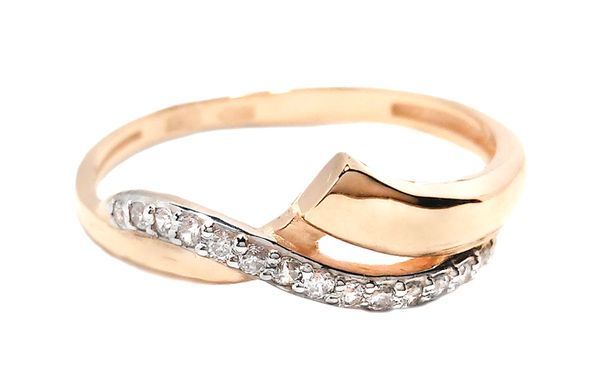 Перстень з червоного золота з фіанітами 350175