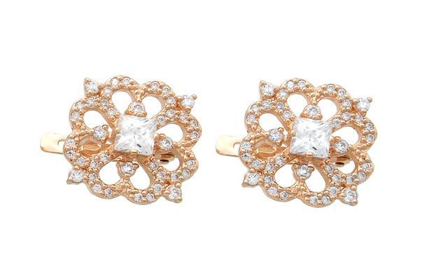 Сережки з червоного золота з фіанітами 250222